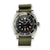 A ceramic dive bezel, screw-down crown and case back, and beefy, easy-grip bezel and crown enhance the rugged, functional design. Each watch ships on an OD green seatbelt-style military strap, ready for any adventure.